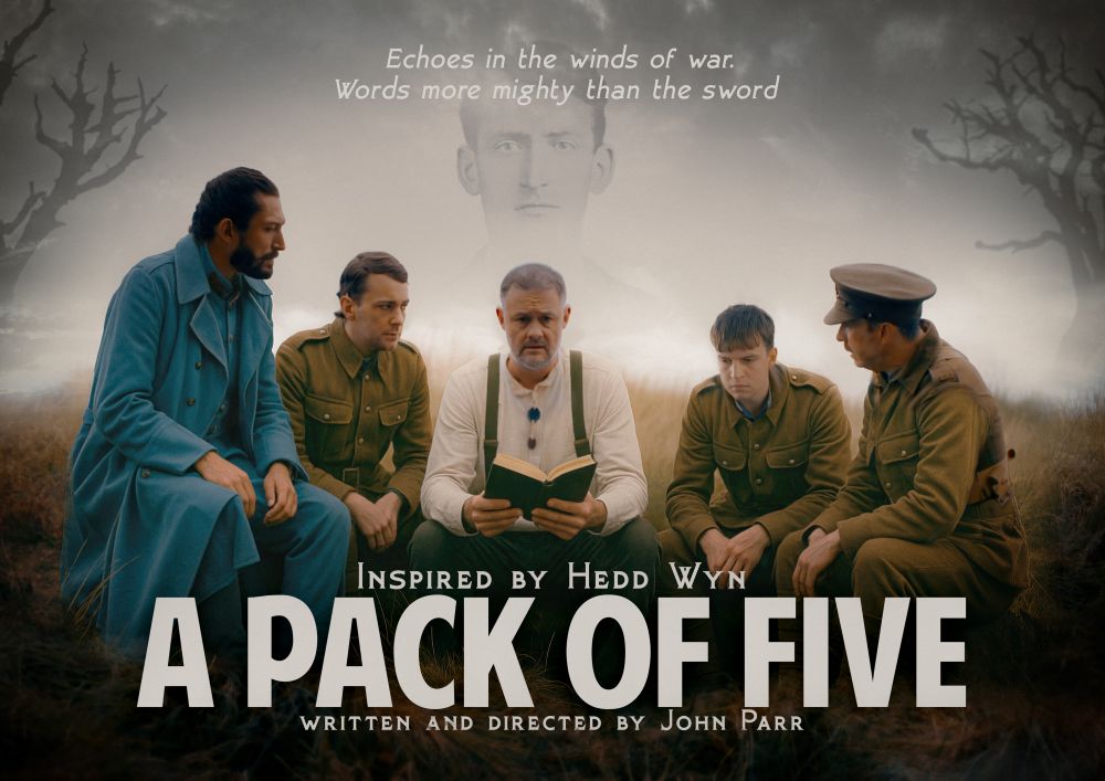 A Pack of Five tells the story of five soldiers who meet in the calm aftermathof battle and share a cigarette from a pack of five. Unknown to each other it soon becomes clear that they share more that a smoke and that each of their lives have been touched through an encounter with Hedd Wyn.